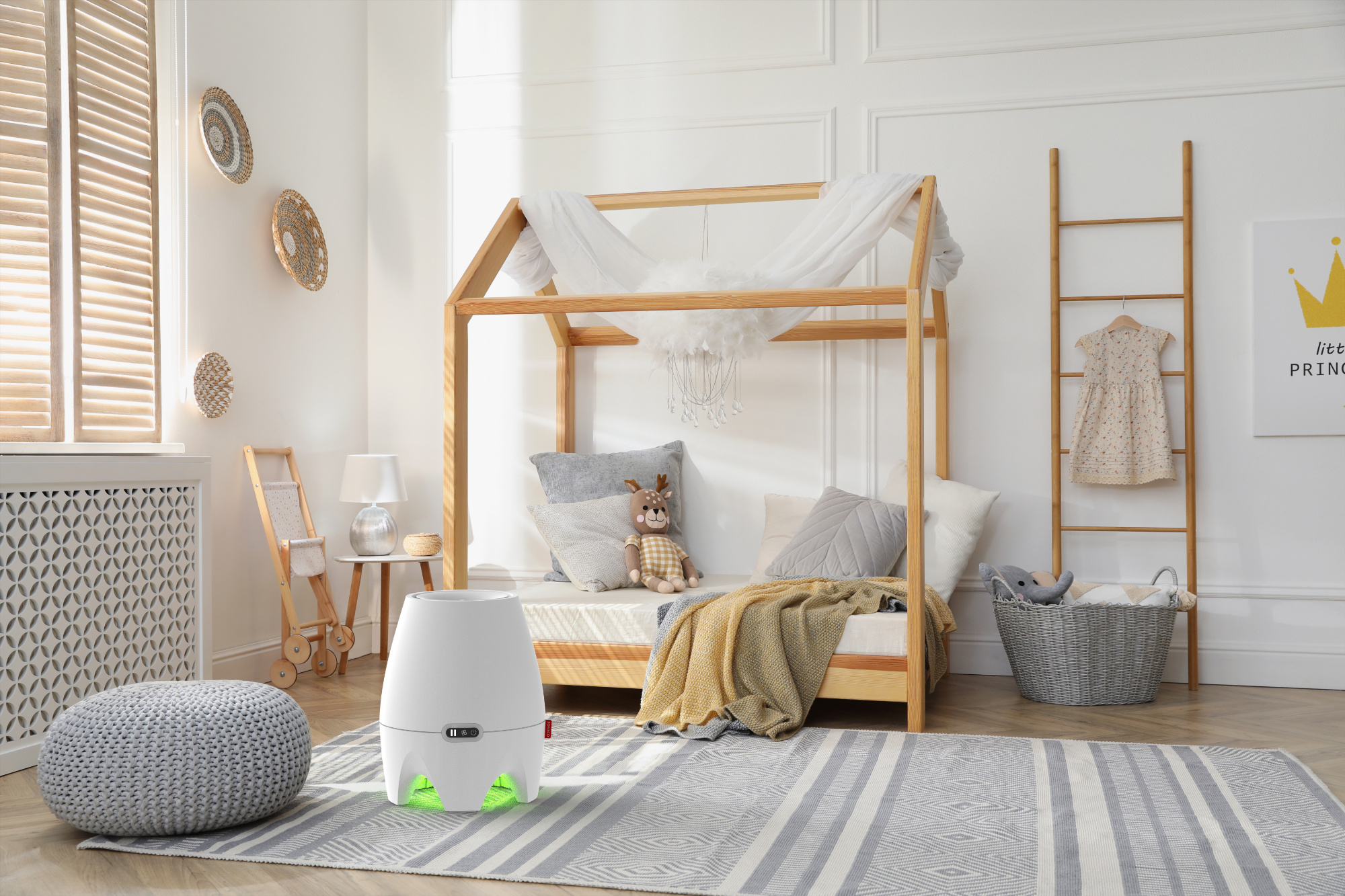 Humidificateur BONECO E200 - Lauréat du Red Dot Design Award L’humidificateur BONECO E200 a été récompensé par le prestigieux Red Dot Design Award. Cet humidificateur à évaporation à froid séduit par son design sobre et rafraîchissant, tout en offrant une utilisation simple et intuitive. Le BONECO E200 dispose de 3 niveaux de puissance et d’un éclairage LED, facilement contrôlables via un panneau de commande intuitif. Avec une capacité d’humidification de 4,8 litres par jour, il humidifie silencieusement des pièces jusqu’à 30 m². Le compartiment d’aromathérapie intégré permet l’utilisation d’huiles essentielles. Lorsque le réservoir d’eau est vide, l’appareil s’éteint automatiquement. Le réservoir (3,8 litres) se remplit facilement par le haut. Le Ionic Silver Stick (ISS) maintient l’eau du réservoir exempte de bactéries. Le Boneco E200 fonctionne selon le principe de l’évaporation à froid, ce qui permet une utilisation tout au long de l’année. Ce procédé autorégulateur assure automatiquement un taux d’humidité optimal, en diffusant uniquement la quantité d’humidité nécessaire dans l’air ambiant. Un ventilateur aspire l’air sec à travers le filtre d’évaporation humide et le restitue parfaitement humidifié. L’eau s’évapore naturellement jusqu’à l’obtention du niveau d’humidité idéal. Un taux d’humidité correct est essentiel pour un environnement de vie et de travail sain. Un air trop sec peut provoquer une peau sèche et irritée, des yeux secs et augmenter la sensibilité aux rhumes et autres infections. Cet humidificateur à eau froide écoénergétique garantit un climat intérieur sain dans les salons, chambres, chambres d’enfants ainsi que dans les bureaux. Caractéristiques Pour pièces jusqu’à 30 m² (75 m³) Humidificateur à évaporation à froid Capacité d’humidification : 4,8 litres par jour 3 niveaux de puissance Commande simple et intuitive Consommation électrique : 2,2 – 5,7 watts Niveau sonore : 25 – 44 dBA Arrêt automatique lorsque le réservoir est vide Remplissage facile du réservoir par le haut Compartiment d’aromathérapie intégré (huiles essentielles) Fonctionnement silencieux et économe grâce au moteur DC Éclairage LED multicolore, désactivable Fonctionnement écoénergétique Ionic Silver Stick® limite la croissance des micro-organismes Livré avec Ionic Silver Stick (ISS) Composants de haute qualité et longue durée de vie Lauréat du Red Dot Design Award