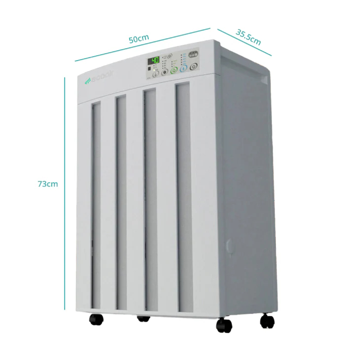 EcoAir Droid est un déshumidificateur professionnel à adsorption avec une capacité de déshumidification élevée pouvant atteindre 25 litres d'humidité par jour. Sa large plage de température le distingue des autres déshumidificateurs professionnels, il sèche efficacement à une température ambiante comprise entre -5 °C et 40 °C. Cette large plage de température le rend adapté à toutes les saisons et aux pièces non chauffées comme aux pièces chauffées. Droid est moins sensible aux températures ambiantes extrêmes qu'un déshumidificateur à condensation professionnel. Il est parfait pour une déshumidification puissante dans les musées, les galeries d'art, les garages, les bureaux, les caves, les spas, les piscines, les salles de sport, les hôtels, les vestiaires, les bibliothèques, les supermarchés, les librairies, les entrepôts et bien plus encore.