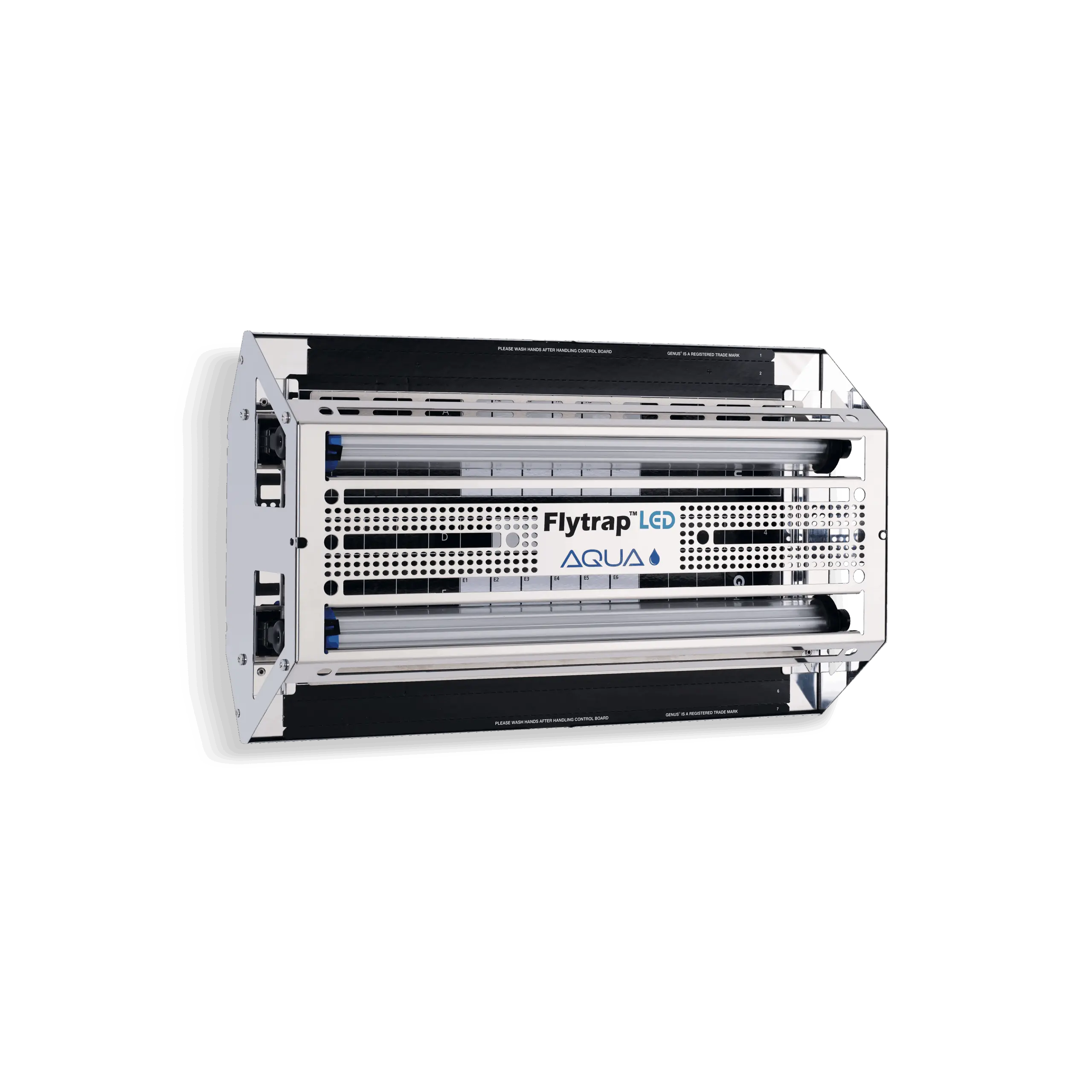 Le Insect-O-Cutor Flytrap LED Aqua est un piège à insectes robuste et hygiénique spécialement conçu pour les environnements professionnels où la lutte contre les insectes et les normes d’hygiène élevées sont essentielles. Grâce à la technologie UV LED économe en énergie, l’appareil attire efficacement les insectes volants et les capture sur une plaque adhésive discrète. La version Aqua est conçue pour des environnements exigeants et dispose d’un indice de protection IP66, ce qui protège l’appareil contre la poussière et les jets d’eau. Cela rend ce piège particulièrement adapté aux zones de transformation alimentaire, aux cuisines professionnelles, aux entrepôts et à d’autres environnements industriels. La structure en acier inoxydable garantit une construction durable et un design hygiénique facile à nettoyer. Associée à une technologie LED efficace et à une grande surface de capture, la Flytrap LED Aqua offre une solution fiable et nécessitant peu d’entretien pour le contrôle des insectes volants.