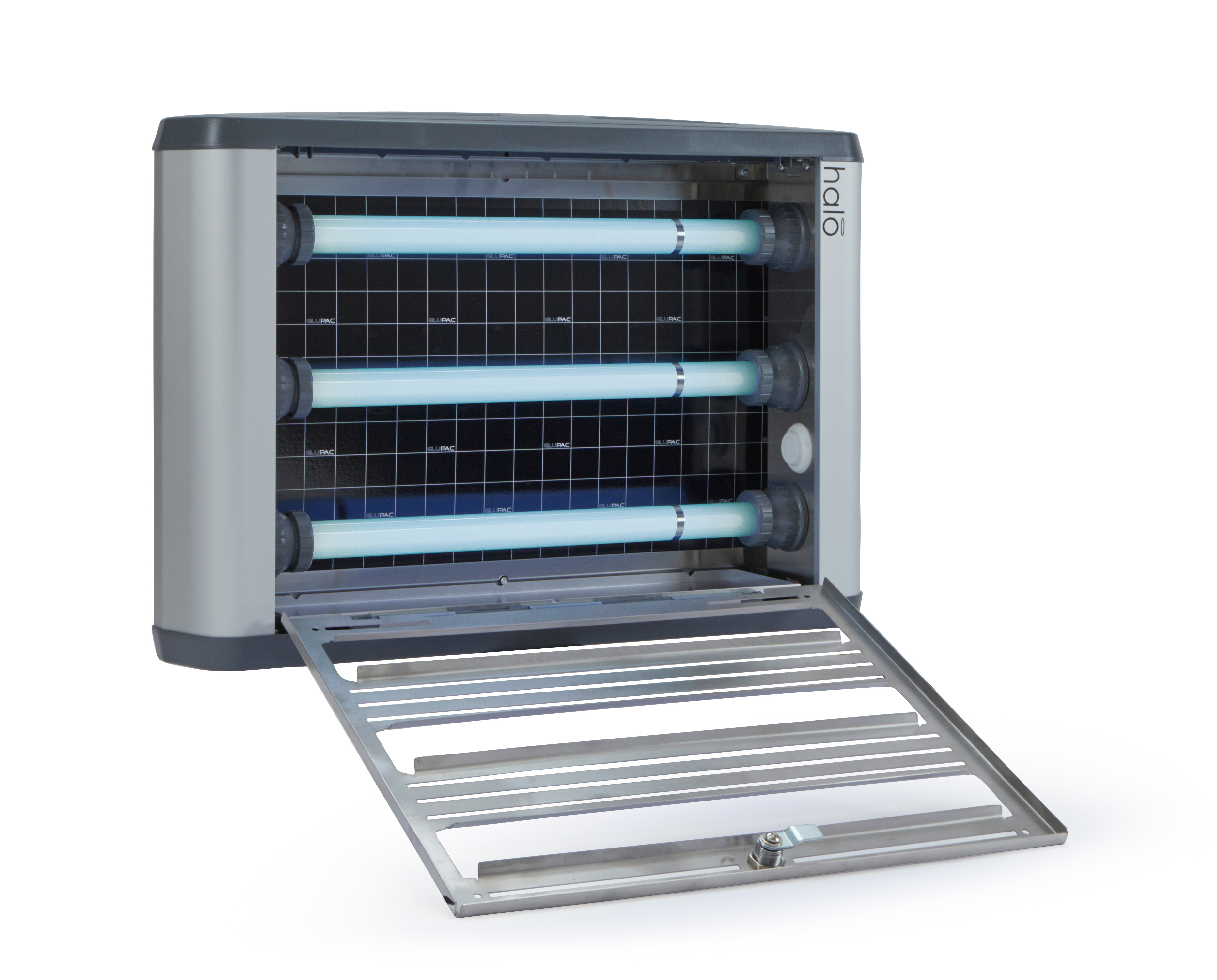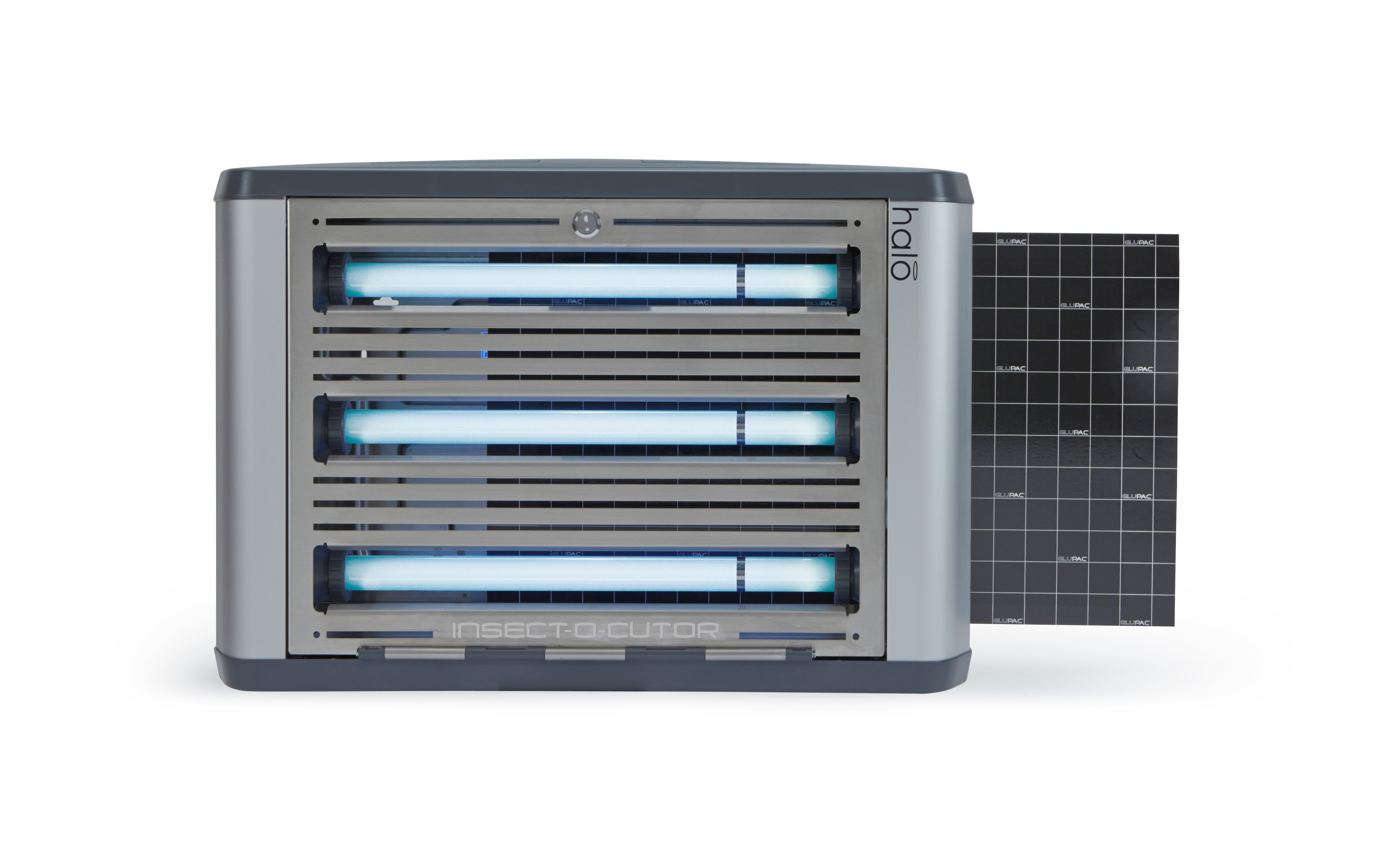 Insect-O-Cutor Halo 45 Aqua UV – Piège à insectes pour environnements humides Le piège à insectes Insect-O-Cutor Halo 45 Aqua UV fait partie de la vaste gamme Halo® et est conçu pour une utilisation dans des environnements exigeants. Il constitue la solution idéale pour les zones humides ou les espaces nécessitant un nettoyage à l’eau. Cet appareil, classé IP45 (résistant aux projections d’eau), allie efficacité, modernité et discrétion. L’unité à plaque adhésive est équipée de la feuille collante brevetée Glupac® avec stabilisateur UV et couvre une surface jusqu’à 120 m². Le modèle double face est doté de tubes UV à revêtement FEP incassables et d’un boîtier robuste en acier inoxydable 316. L’entretien est simplifié grâce au panneau avant pivotant, et les options d’installation sont multiples : montage mural vertical ou horizontal. Également disponible en version Insect-O-Cutor Halo 2x45 Aqua UV (double face – 240 m²). D’autres modèles de la gamme Halo® sont disponibles en 15, 30 (simple ou double face) ou 45 W (sans classification IP45).