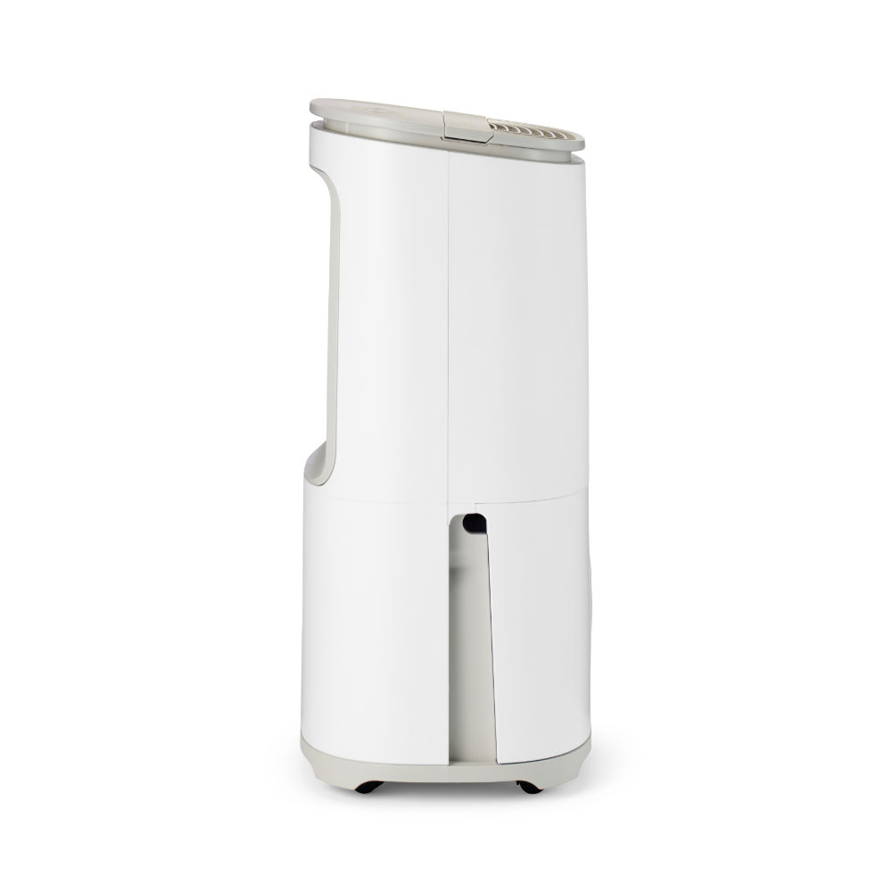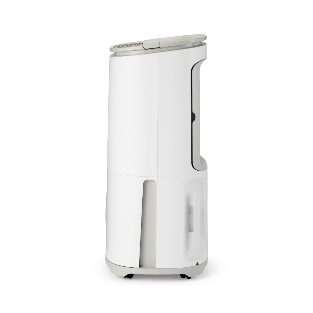 Le Meaco Arete One 20l est le déshumidificateur le plus silencieux et le plus économe en énergie de la gamme Meaco. Le Meaco Arete n'est pas seulement élégant, il est aussi très pratique. Les ouvertures sur le côté du déshumidificateur permettent de le placer plus près du mur. Nous avons ajouté des pieds pour le faire ressembler à un meuble, les roulettes sont dissimulées.